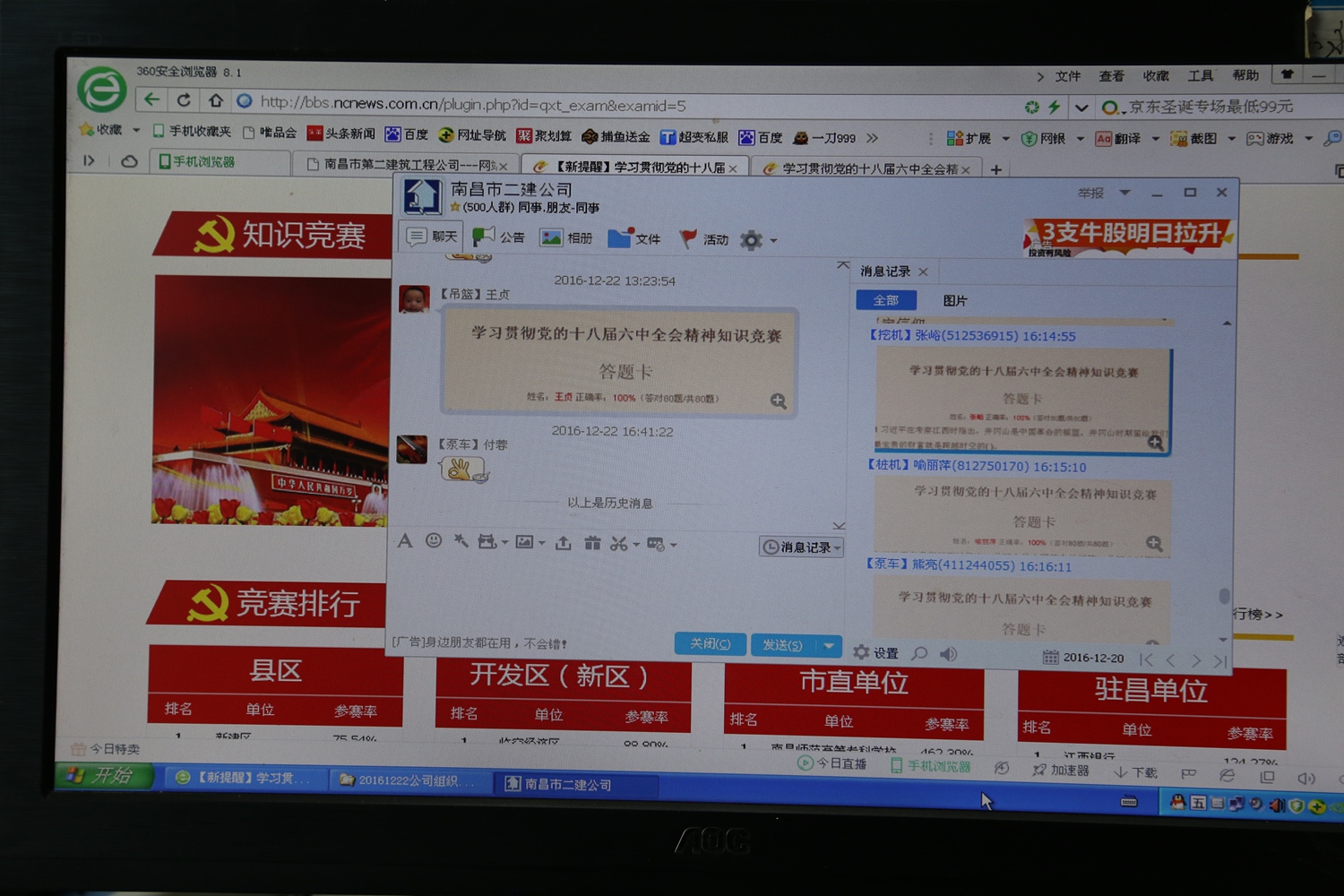 公司组织参加学习贯彻党的十八届六中全会精神知识竞赛