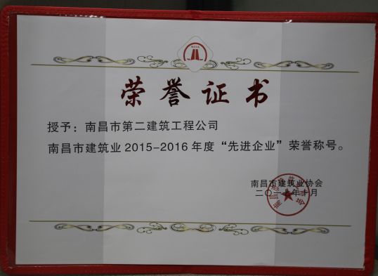南昌市建筑业协会对公司颁发了南昌市建筑业2015-2016年度“先进企业”荣誉称号,对公司建造师章寿荣、何静、胡建平、高波颁发了南昌市建筑业2015-2016年度“优秀建造师”荣誉称号;中国建筑业协会对章寿荣颁发了全国建筑业企业优秀项目经理荣誉称号。