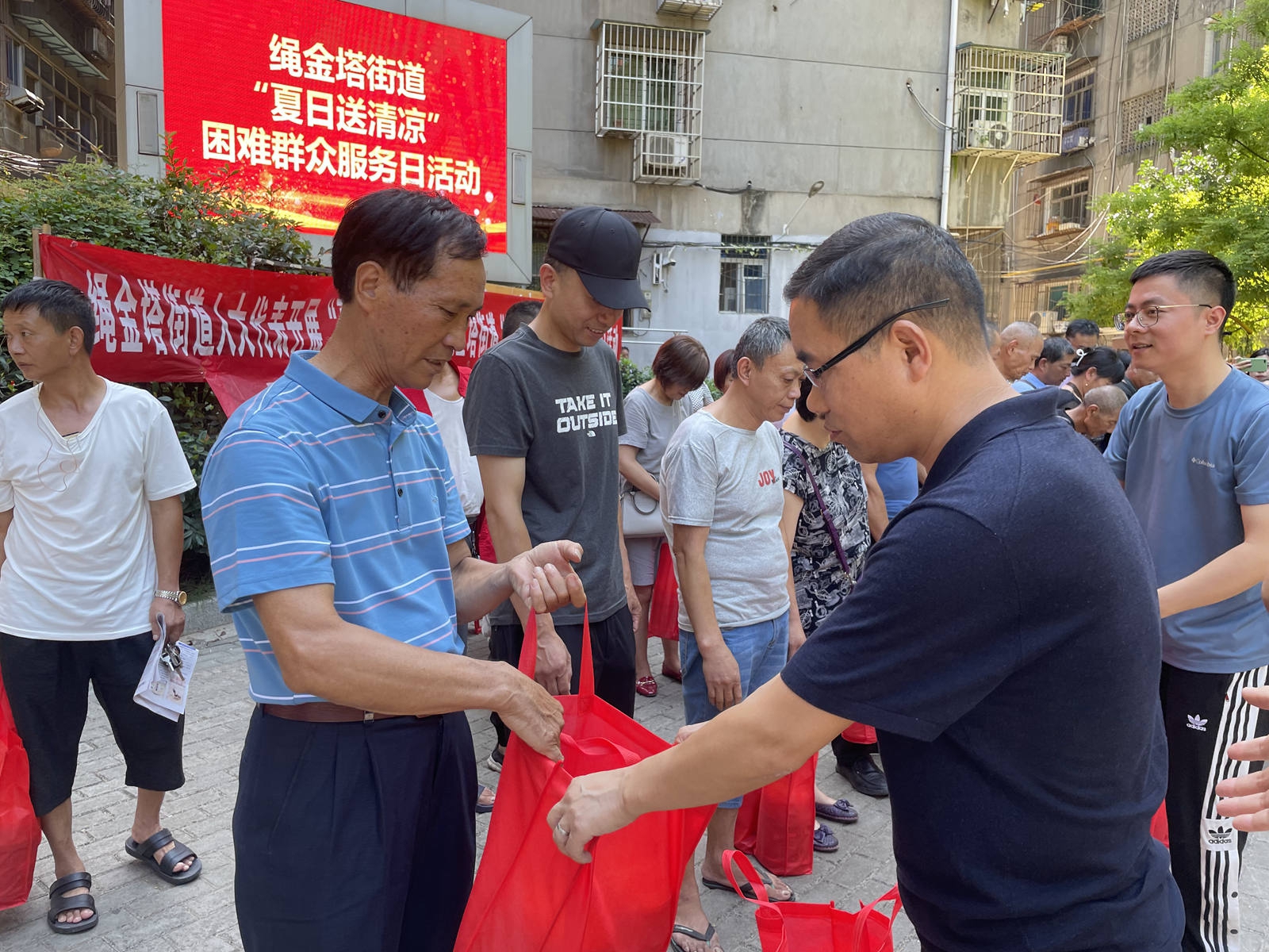 7月22日,公司党委与共筑共建对象绳金塔街道张家山社区党总支一起,参加了由该街办组织的“困难群众服务日”活动。南旅建工集团总经理、公司党委书记、董事长王彦,南旅建工集团党委副书记、常务副总经理龚戬,公司副总经理郭秋芳、公司纪检书记王小华、工会主席付蓉等领导率相关部门参加?;嵘?,王彦同志代表公司对本次的活动表示赞赏,并以感恩和回馈社会的情怀,向关心支持公司发展的各界朋友致以感谢?;疃?/font>“夏日送清凉,呵护你我他”主题,向到会的困难群众赠送了带去的防暑降温用品,受到社区和群众的称谢。