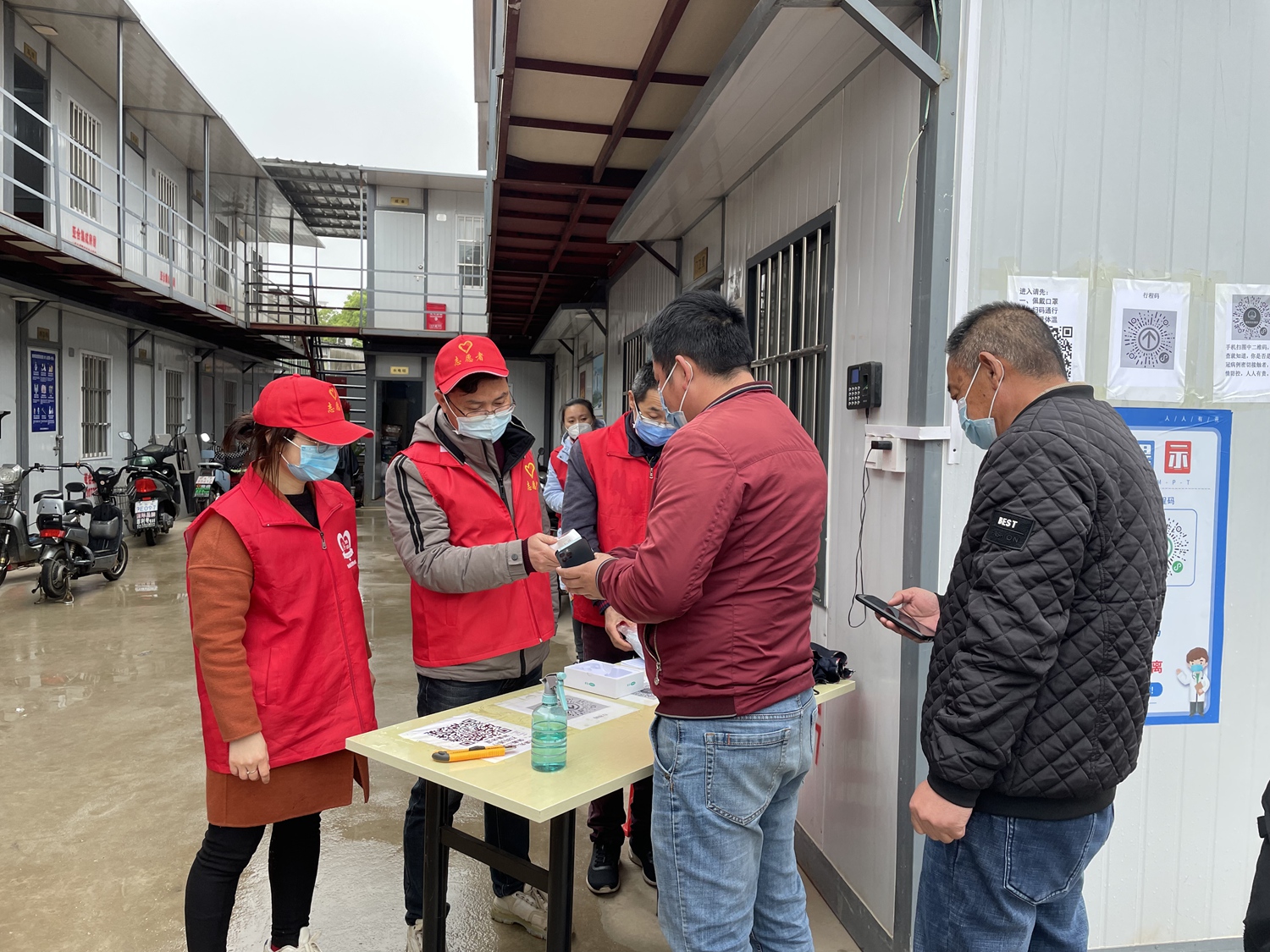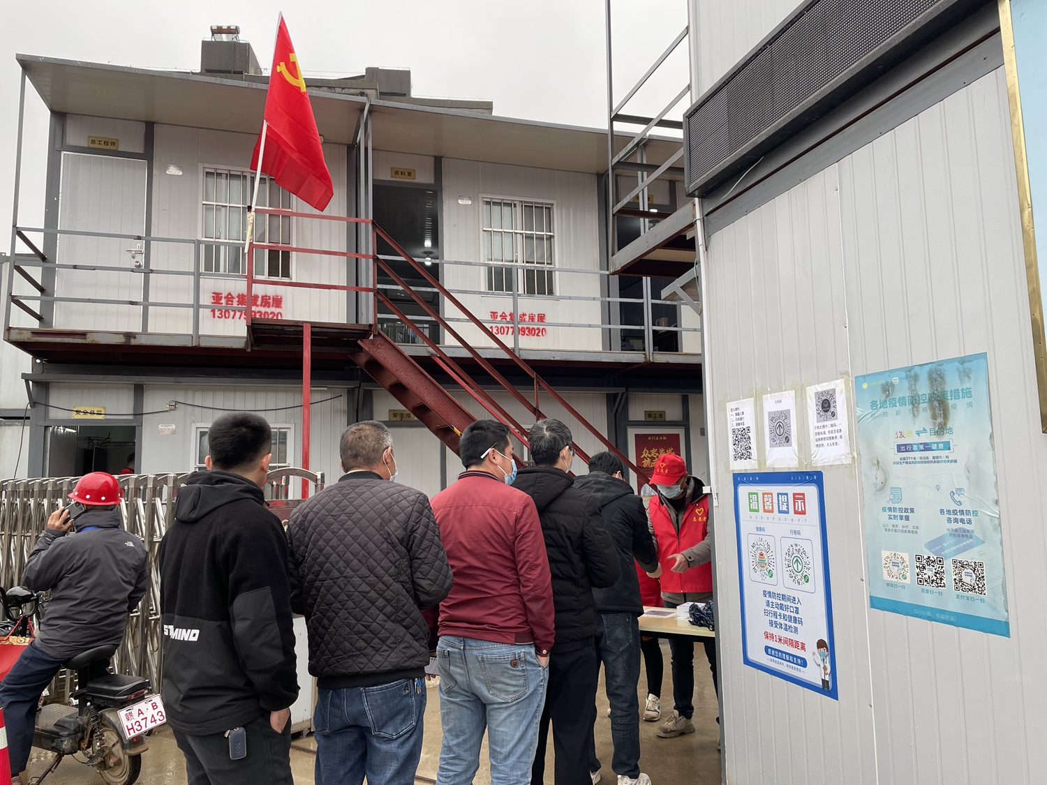 (绳金塔张家山社区) 一个支部就是一个堡垒。公司第一党支部将工作前移到疫情防控一线,以党建共建对象张家山社区为点,组织党员和入党积极分子深入社区防控一线,开展志愿者活动,对居民进行防控知识的宣传教育,在核酸检测点,帮助疏导交通、维护秩序,指导居民检测,动员广大居民积极参与全员核酸检测,以实际行动投入到防控一线。公司绳金塔民俗风情街工程项目临时党支部坚持一手抓疫情防控,一手抓工程项目建设。成立了党员先锋岗,主动扛起防疫责任,在做好工地防控设施围护的前提下,坚持每天做好进场人员的体温检测,教育工地人员注意个人防护,定时对工地进行杀菌消毒。从而,保证了工程项目在疫情期间不停工、不停产 ,体现了党旗在防控一线高高飘扬。