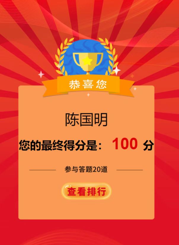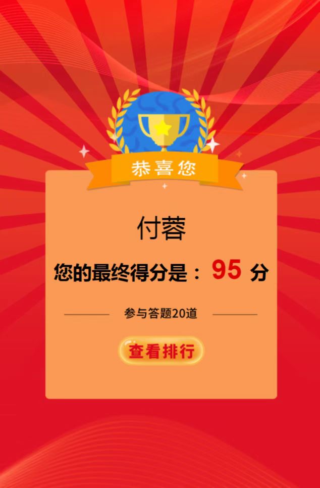 该竞赛是以“传承红色基因 守牢纪法底线”为主题,通过线上学习,线上答题的形式,以考促学,以考验效,营造了学习“四史”的浓厚氛围,重点教育党员干部深刻认识“两个确立”的决定性意义,增强“四个意识”、坚定“四个自信”、做到“两个维护”。同时,把答题活动作为加强党员干部纪法教育的重要载体进行落实,激发党员干部学习纪法知识的积极性、主动性,牢固树立纪法意识,自觉严守纪律规矩、不逾纪法底线,廉洁从政从业、规范行权用权。