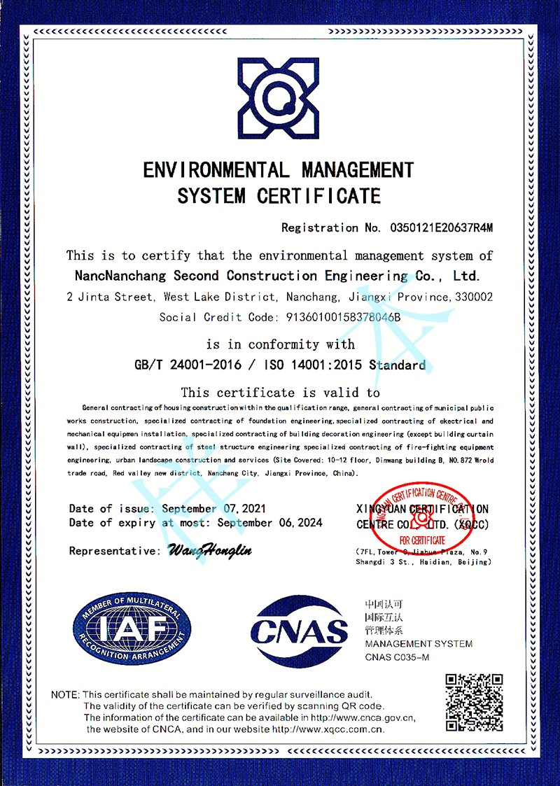 环境管理体系认证证书